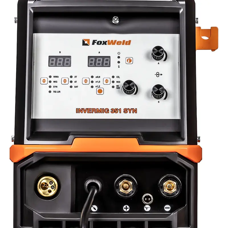 Встроенная функция горячего старта облегчает начало сварки. В случае неудачного розжига напряжение сварочного тока мгновенно снижается во избежание залипания электрода. Благодаря функции VRD со сварочным аппаратом FoxWeld INVERMIG 351 SYN можно работать при повышенной влажности. Инверторная технология обеспечивает стабильную дугу и удобство сварки. Механизм подачи с четырьмя ведущими роликами подает проволоку в область сварки без проскальзывания и рывков.