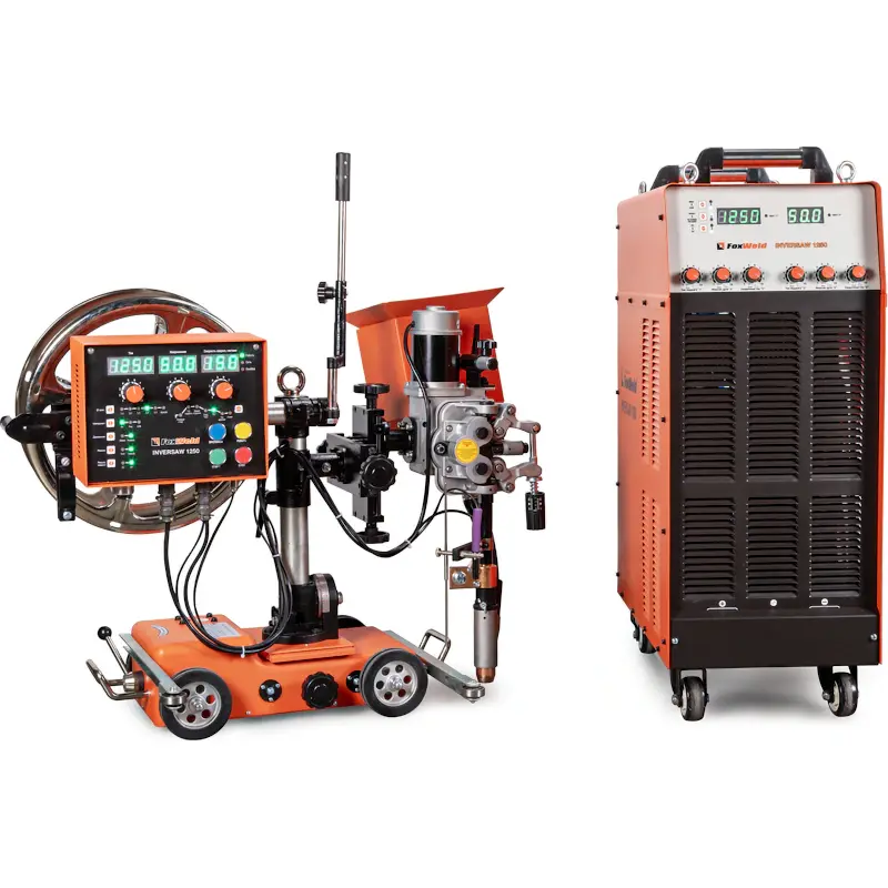 Сварочный источник FOXWELD INVERSAW 1250 с трактором обладает высокой энергоэффективностью, имеет хорошие динамические характеристики, устойчивую дугу и прост в управлении. Аппарат может использовать различные виды электродов с разными спецификациями и типами, в том числе электроды с основным, кислотным и целлюлозным покрытием. INVERSAW 1250 предоставляет возможность выбора падающей и жёсткой вольтамперной характеристики, поэтому подходит для широкого спектра задач. Стабильное напряжение дуги обеспечивает отличную работу сварки. Данное оборудование многофункционально, доступна сварка под слоем флюса (SAW), ручная дуговая сварка (ММА), а также строжка угольным электродом. Трактор для автоматической подачи проволоки для дуговой сварки под флюсом и источник питания для дуговой сварки под флюсом образуют «автомат для дуговой сварки под флюсом», который подходит для сварки различных стальных листов средних и больших толщин, таких как стыковые соединения, внахлестку и угловые швы. Аппараты INVERSAW широко используется в автоматической сварке для различных крупных и средних металлоконструкций из углеродистой стали, легированной стали, герметичных сосудов из нержавеющей стали, металлоконструкций и т.д.