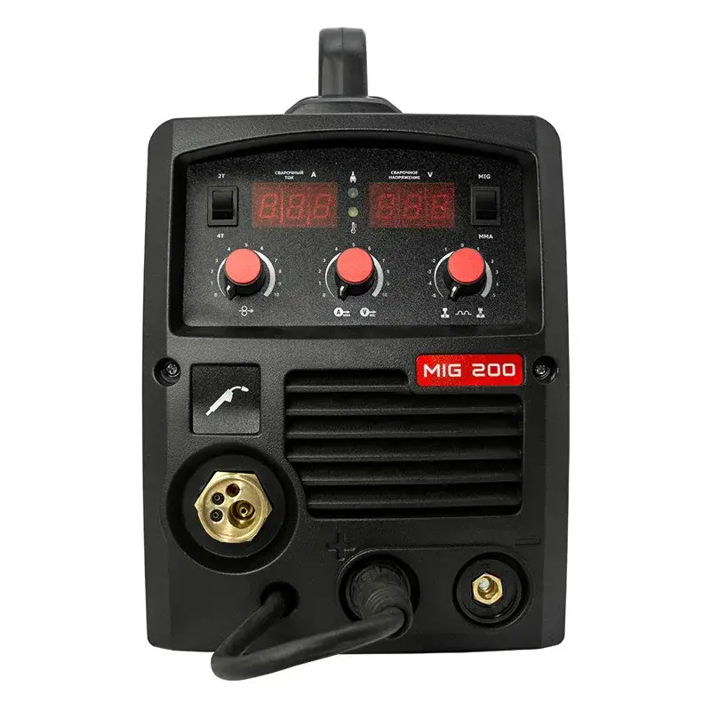 В сварочном аппарате установлен силовой блок инверторного типа IGBT. Такая технология обеспечивает высокую силу тока при минимальном нагреве аппарата. Работа происходит без значительных просадок в напряжении.