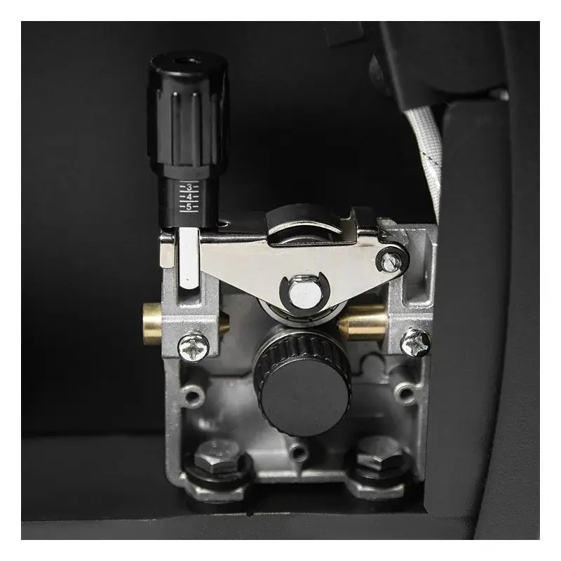 Для эффективной работы с различными материалами предусмотрена гибкая настройка параметров. В модели регулируется скорость подачи проволоки, индуктивность, а также напряжение и ток.