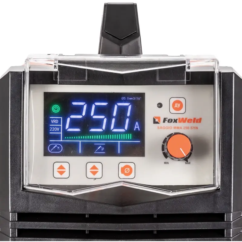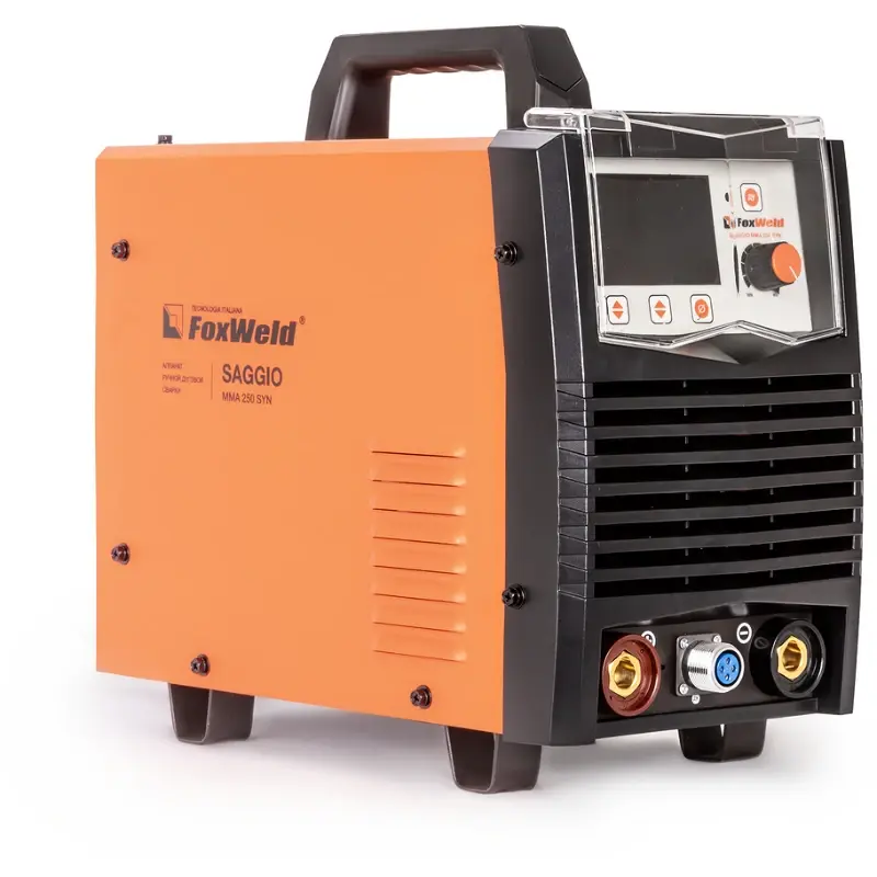 Сварочный аппарат SAGGIO ММА 250 SYN с синергетическим режимом управления предназначен для ручной дуговой сварки (ММА) любыми типами электродов и выполнен по новейшей IGBT технологии, позволяющей добиться минимального веса и габаритов. SAGGIO ММА 250 SYN отличается надёжностью, хорошими техническими характеристиками, имеет программно-установленные функции AntiSticking (антизалипание), регулируемые Нot Start (горячий старт) и Arc Force (форсаж дуги), и устойчиво работает при понижении напряжения сети, что делает аппарат более универсальным и практичным. Синергетическая система управления позволяет легко и быстро настроить аппарат по диаметру сварочного электрода. Дополнительный режим TIG LIFT позволяет проводить аргонодуговую сварку на постоянном токе изделий из черной и нержавеющей стали, меди, титана, чугуна. Данный вид сварки характеризуется отсутствием брызг и более презентабельным внешним видом сварного шва. Для проведения аргонодуговой сварки необходимо дополнительно приобрести горелку с вентилем, баллон с газом и присадочную проволоку.