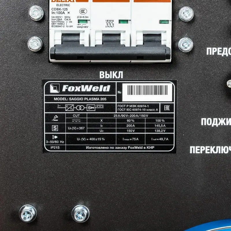 Аппарат плазменной резки SAGGIO PLASMA 205 позволяет разрезать сталь толщиной до 70 мм. SAGGIO PLASMA 205 подходит для резки алюминиевых сплавов, меди, цветных металлов, нержавеющей и углеродистой стали. Дежурная дуга плазмотрона обеспечивает стабильность и удобство, особенно при резке загрязнённых и окрашенных поверхностей. Информативная панель управления аппарата с цифровым дисплеем и наглядной циклограммой рабочего процесса позволяют без труда настроить все этапы процесса резки. Режимы работы плазмотрона 2Т / 4Т подходят для короткого и длинного реза. Есть возможность подключения блока жидкостного охлаждения. Аппарат оборудован колёсами для удобного перемещения. Для работы с аппаратом необходим внешний блок жидкостного охлаждения КС-20 (в комплект поставки не входит, приобретается отдельно 6554 Блок охлаждения FoxWeld КС-20).