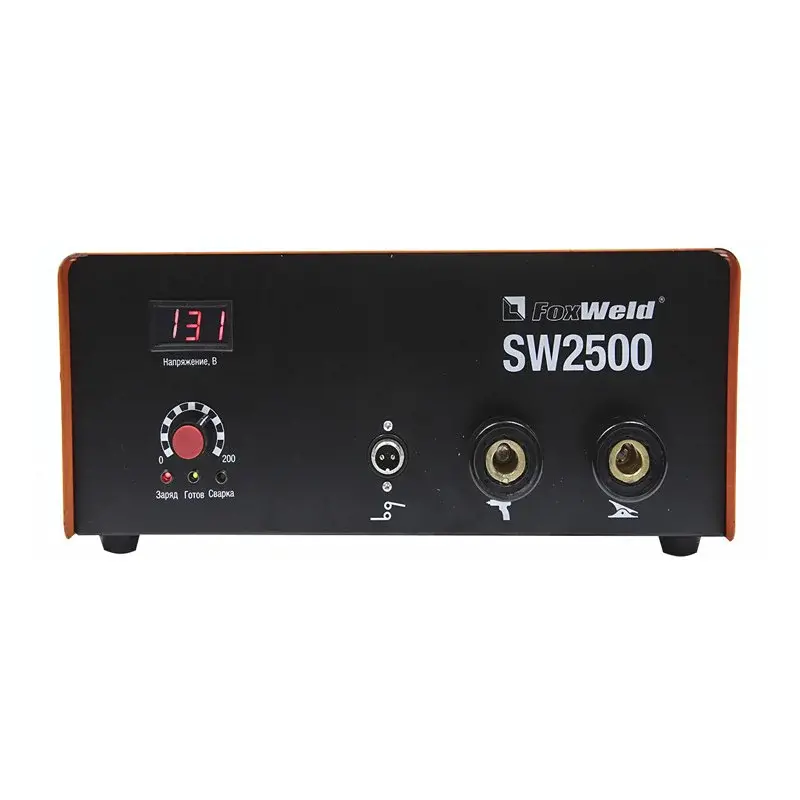 Аппарат конденсаторной приварки шпилек FoxWeld SW2500 находит широкое применение в работе дорожных и коммунальных служб, автосервисных центров, предприятий нефтегазовой и строительной промышленности. Устройство мощностью 2500 Дж/с предназначено работы с деталями из углеродистой и нержавеющей стали, алюминия, латуни. Аппарат рассчитан на приваривание шпилек диаметром М3–М10. Работает от сети с напряжением 220 В. В комплектацию входят: сварочный пистолет, два зажима на массу, цанговые патроны М4, М5, М6 и М8.