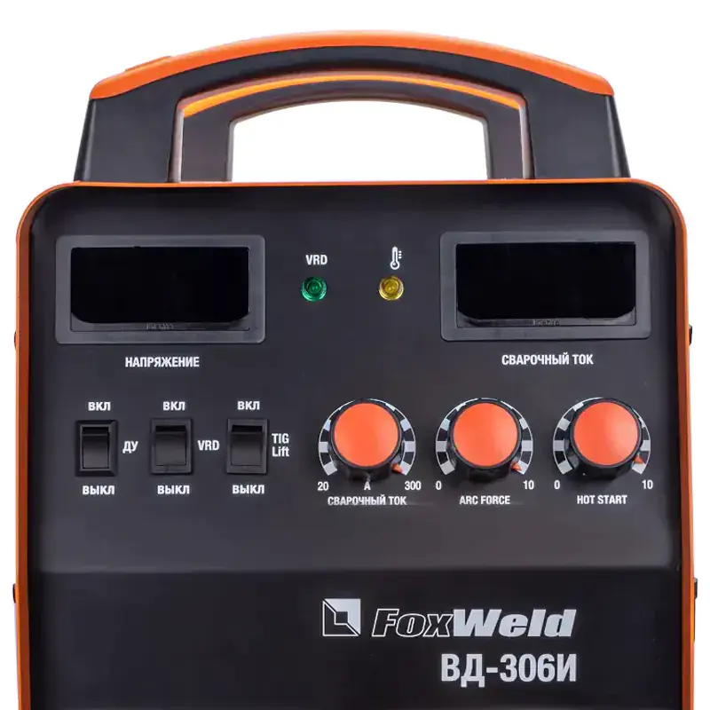 Разъем ДУ позволяет подключать педаль для регулировки сварочного тока на расстоянии. Режим VRD позволяет автоматически снижать напряжение до безопасного уровня на холостом ходу. Благодаря этому с оборудованием можно работать при повышенной влажности. Инверторная технология обеспечивает стабильную дугу и удобство сварки с помощью сварочного инвертора FoxWeld ВД-306И.