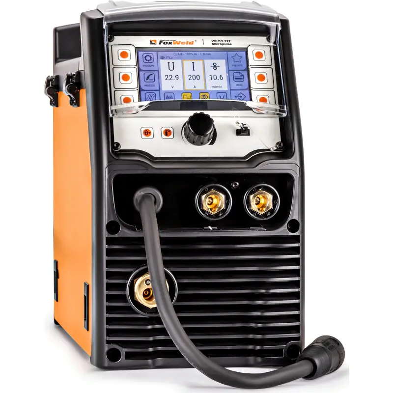 Сварочный полуавтомат FOXWELD WECO MIG 227 DP DIGITAL разработан для обеспечения сварщиков легким и мобильным сварочным аппаратом, который благодаря уменьшенному объёму можно легко перемещать в любом месте, в том числе при проведении сварки в труднодоступных местах. Перемещение аппарата облегчается благодаря эргономичной верхней ручке. 4-роликовый механизм подачи с оптическим датчиком обеспечивает эффективную и точную подачу проволоки. 4 ведущих ролика гарантируют плавную подачу проволоки, особенно при использовании алюминиевых и медных сплавов. Наличие мощного микропроцессора позволяет полностью управлять всеми функциями сварки, делая систему пригодной для различных видов сварочного процесса. С помощью USB-разъёма можно обновить программное обеспечение аппарата, записать на USB-накопитель сохранённые режимы сварки и перенести их с одного аппарата на другой. Аппараты FoxWeld серии WECO собрали в себе опыт разработки и эксплуатации профессионального сварочного оборудования, начиная с 1998 г. Все аппараты линейки WECO разрабатываются и производятся в Италии на заводе Corso Noblesville. Высокое качество производства и надежность наших аппаратов позволяют обеспечивать расширенную гарантию на всю линейку FoxWeld серии WECO.