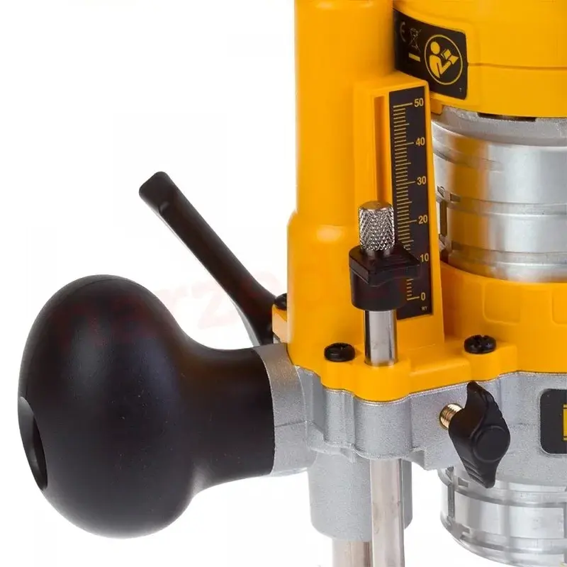 Микрометрическая шкала позволяет быстро и точно настроить глубину погружения. Частоту вращения шпинделя можно ступенчато изменять с помощью поворотного колесика в верхней части двигателя.