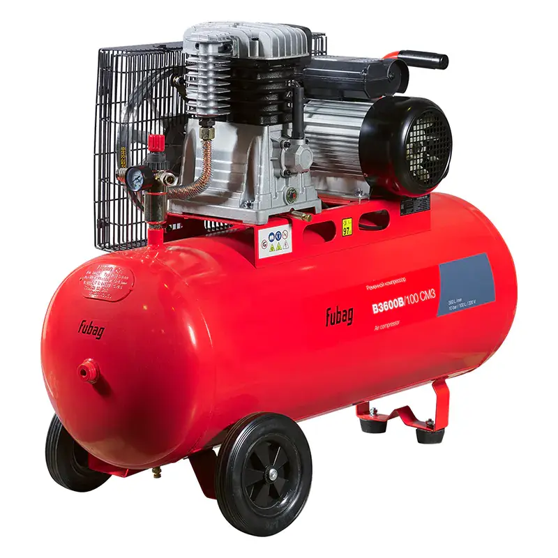 Ременной компрессор Fubag B3600B/100 CM3 с высокой производительностью 360 л/мин и мощностью двигателя 2,2 кВт отличается надежной конструкцией. Данная модель оснащена транспортировочными колесами и теплозащитой мотора.