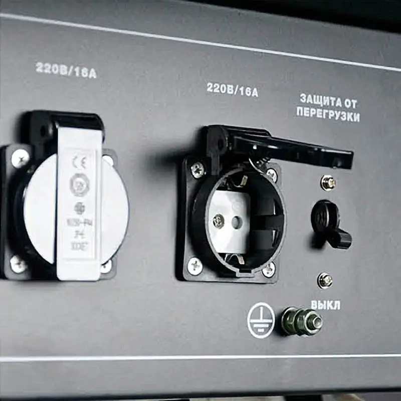Система защиты надежно оберегает генератор от преждевременной поломки. При перегрузке, коротком замыкании или низком уровне масла в бачке происходит остановка работы двигателя.