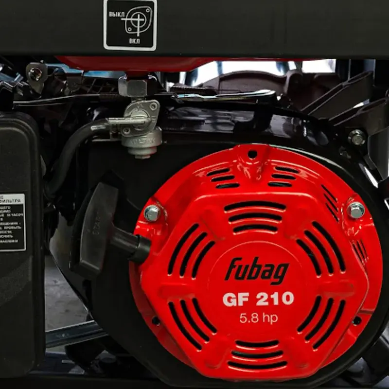 Бензогенератор Fubag BS 3300 обнесен прочной рамой, которая представляет собой трубу диаметром до 32 мм в самой широкой части. Она защищает от механических повреждений, например при падении или ударе во время транспортировки.