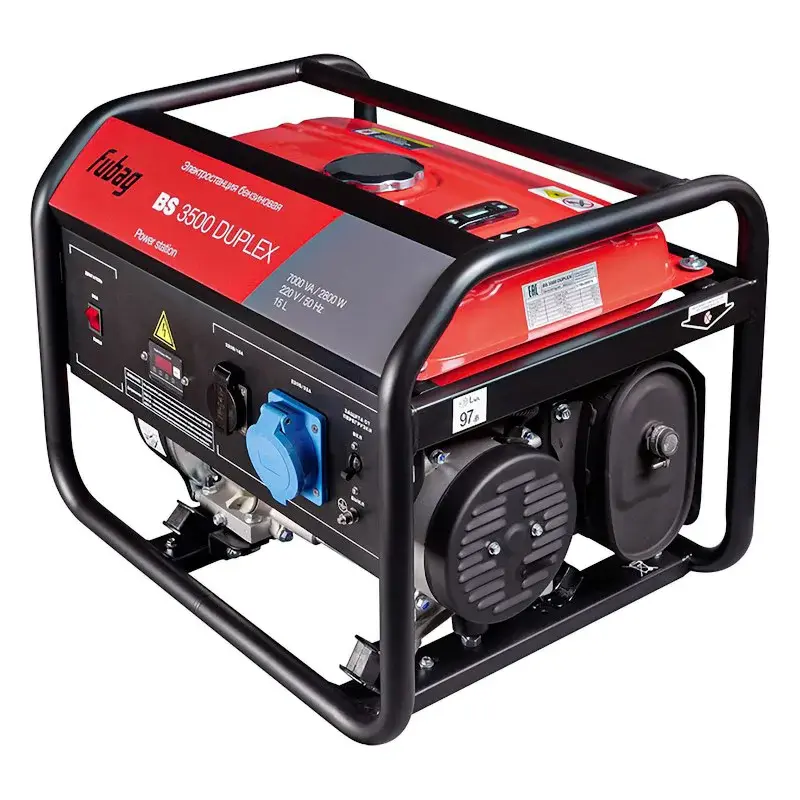 Бензиновая электростанция Fubag BS 3500 Duplex номинальной мощностью 2,8 кВт используется для питания техники на даче, пикнике, рыбалке, в домашней мастерской. При этом модель обеспечивает кратковременную пусковую мощность до 7 кВА.