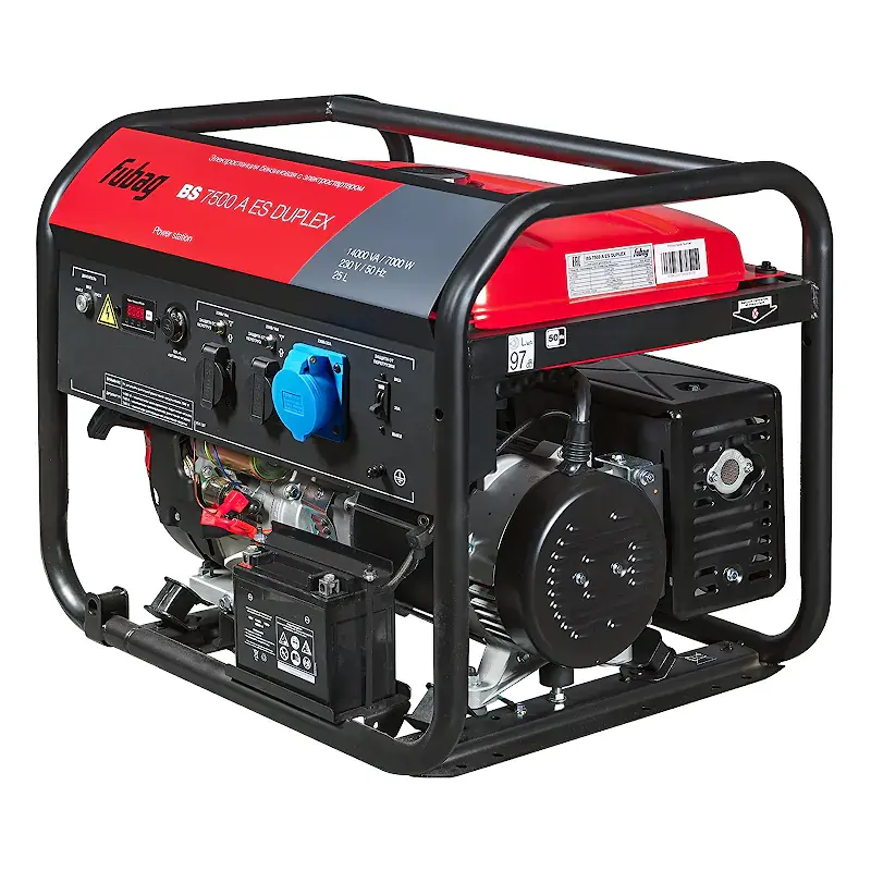 Бензиновый генератор FUBAG BS 7500 A ES DUPLEX рассчитан на пиковую нагрузку 7,5 кВА. Электростанция вырабатывает однофазный ток для бытовой техники, электроинструментов и осветительных приборов, потребляющих в совокупности не более 7 кВт. Разъем АВР позволяет подключить блок автоматического ввода резерва, чтобы генератор запускался самостоятельно в случае сбоя в электроснабжении.