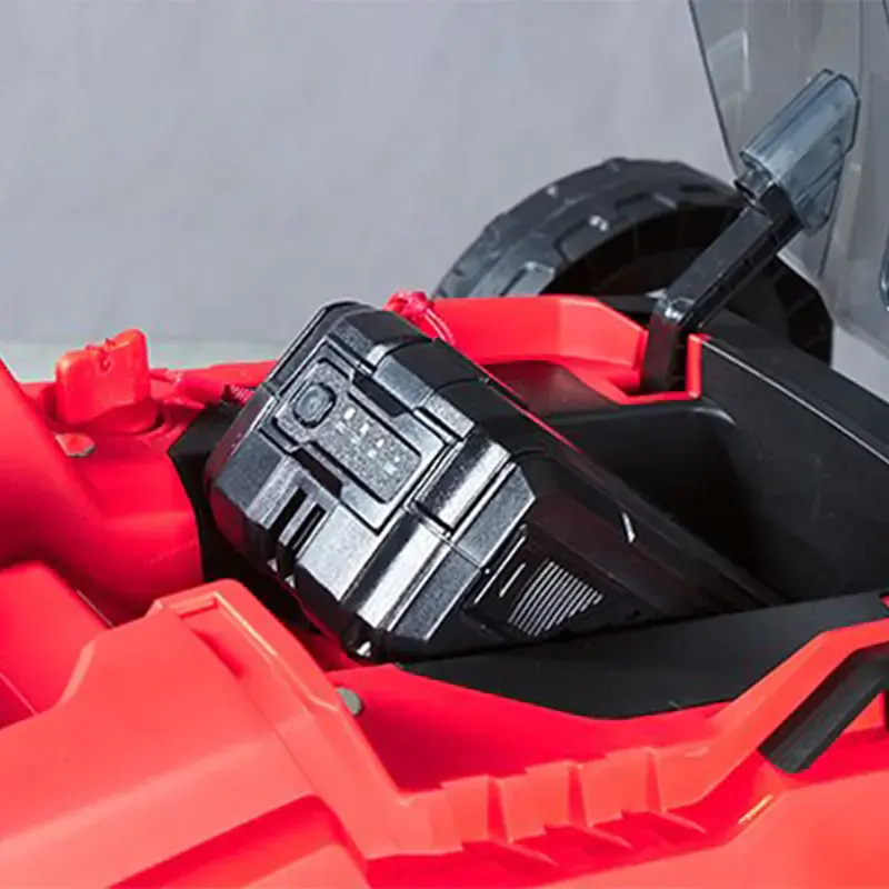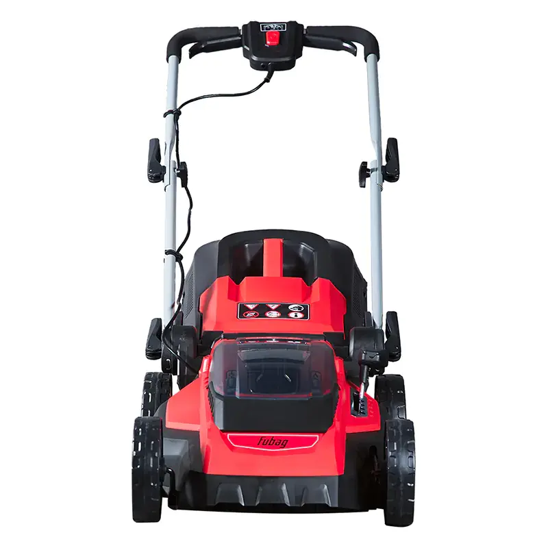 Газонокосилка Fubag FLA 3840 имеет защитный ключ-бирку, который находится под крышкой аккумуляторного отсека. При его извлечении подача питания на электродвигатель прерывается. Этой мерой безопасности удобно воспользоваться, когда устройство остается без присмотра или во время обслуживания: чистки, проверки, устранения засоров. Нажатием кнопки на аккумуляторе можно проверить состояние заряда на светодиодном цветном индикаторе. Складная рукоятка экономит место при хранении и транспортировке косилки. Угол наклона ручки регулируется специальным фиксатором, без использования инструментов. Широкие колеса на подшипниках имеют плавный ход и не повреждают газон.