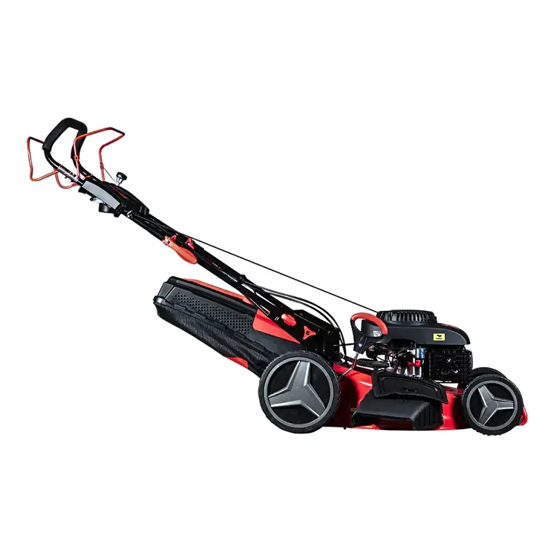 Благодаря электростартеру бензиновая газонокосилка легко заводится одним нажатием кнопки. Данная модель оснащена трехступенчатым переключателем скорости движения. Частота вращения ножа сохраняется независимо от выбранного скоростного режима. Срезанную траву можно либо собирать в подсоединенный травосборник, либо оставлять на газоне. Мульчирующая заглушка позволяет измельчать скошенную растительность и возвращать обратно для удобрения почвы через боковой разгрузочный лоток или задний выброс. При помощи рычага переключения высоты кошения можно выбрать любой из 8 уровней среза травы, который наиболее подходит для ухода за газоном.