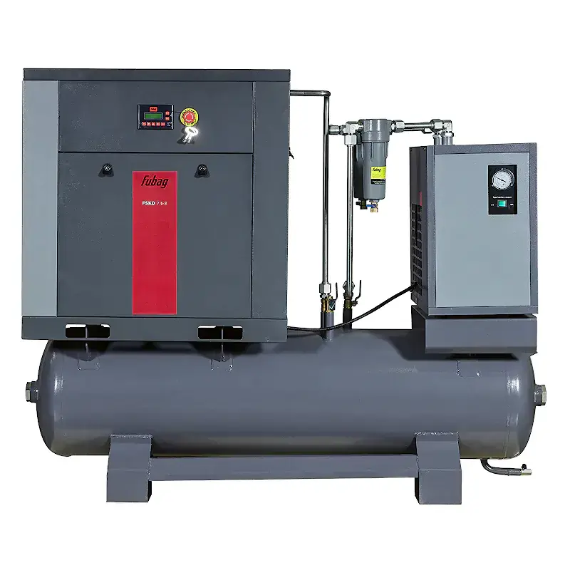 Винтовой компрессор FUBAG FSKD 7.5-8/270 представляет собой универсальное решение для получения технически сухого сжатого воздуха. Комплектация включает в себя воздушный ресивер, рефрижераторный осушитель и два линейных фильтра.