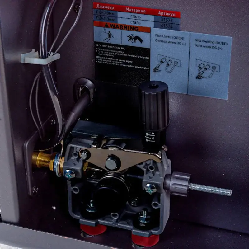 В режиме MIG предусмотрена настройка индуктивности. Вы задаете диаметр проволоки, газ и материал через меню, а аппарат автоматически подбирает оптимальные настройки для качественной сварки.