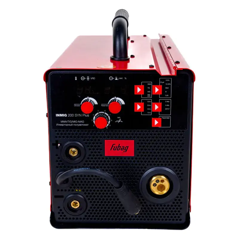 Сварочный полуавтомат FUBAG INMIG 200 SYN PLUS НАКС поддерживает три типа сварки: вручную покрытыми электродами — MMA, дуговым методом TIG и автоматически подаваемой проволокой в среде защитного инертного или активного газа — MIG/MAG. Устройство работает от однофазной электросети с напряжением 220 В. Аппаратом удобно пользоваться как новичкам, так и профессионалам благодаря простой настройке в ручном и синергетическом режимах. Продолжительность включения составляет 40 %.