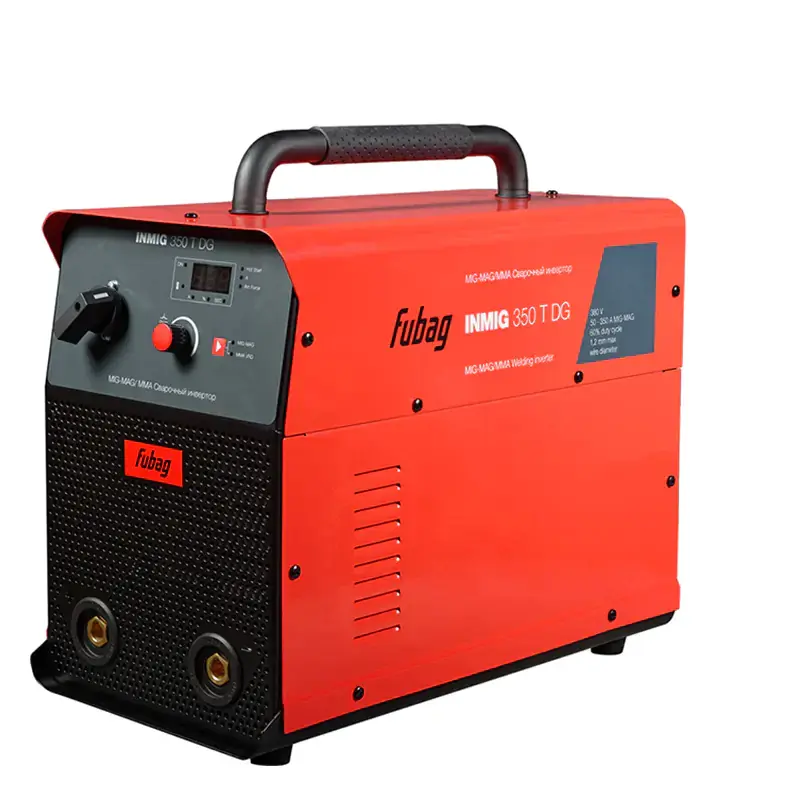 INMIG 350 T DG НАКС - трехфазный сварочный полуавтомат Fubag с выносным 4-х роликовым механизмом подачи проволоки DRIVE INMIG для сварки в режиме MIG-MAG. и порошковой самозащитной проволокой. Полуавтомат с воздушным охлаждением горелки предназначен для выполнения различных сварочных работ. Подающий механизм DRIVE INMIG обеспечивает возможность работы на удалении от источника и имеет цифровой дисплей. Сварочный инвертор позволяет регулировать скорость подачи проволоки, сварочный ток, индуктивность и напряжения дуги. Сварочный полуавтомат обладает легким управлением всеми важными параметрами сварки на лицевой панели подающего устройства с цифровой индикацией параметров, высокой производительностью и способностью проводить сварочные работы широкого спектра.
