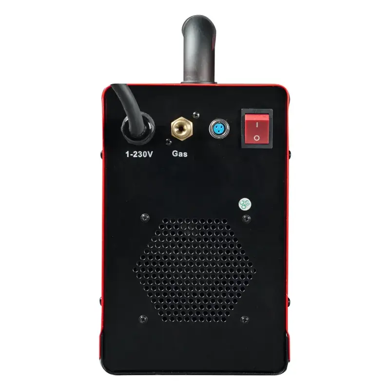 В комплект поставки входит сварочная горелка для аргонодуговой сварки с удобной рукояткой, выполненной из термостойкого пластика. Прорезиненные вставки обеспечивают надежное удержание инструмента. Возможность смены хвостовика позволяет работать в труднодоступных местах. Сопло, формирующее равномерный поток газа, изготовлено из высококачественной керамики, что способствует длительному сроку службы. Силу тока можно регулировать непосредственно на самой рукоятке.