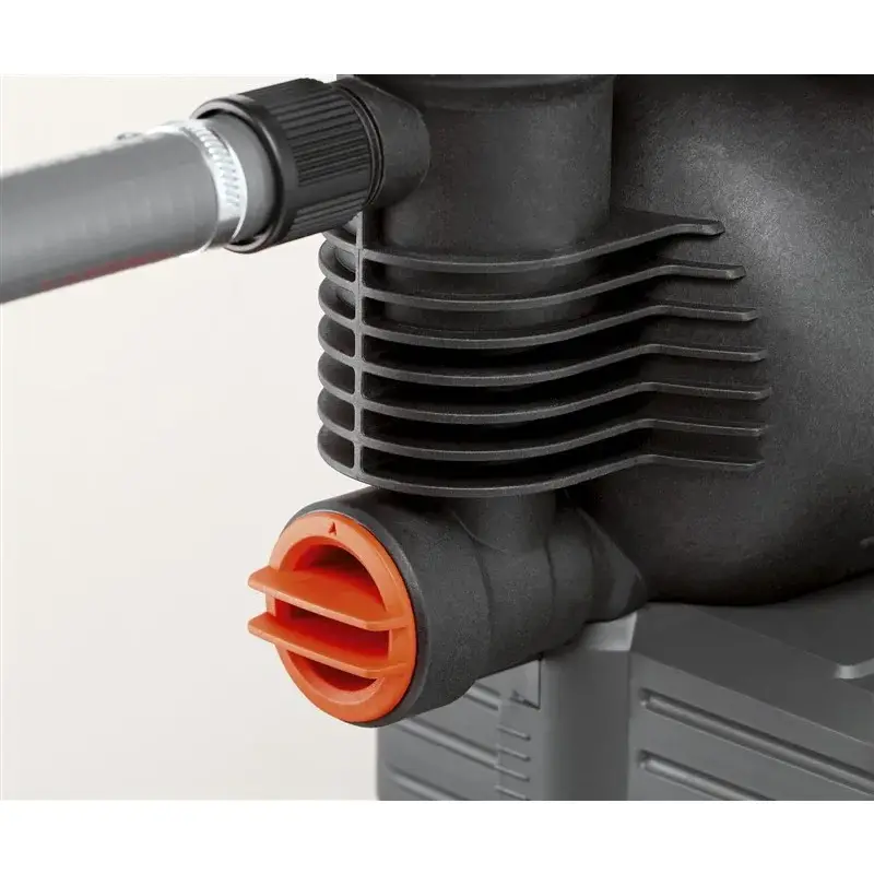 Станция бытового водоснабжения Gardena 5000/5 Premium Eco с номинальной мощностью 1200 Вт идеально подходит для стационарной установки в качестве постоянного элемента Вашей системы водоснабжения. Вы можете использовать дождевую воду там, где Вам необходимо: дома в уборной комнате или для стиральной машины, либо в саду для полива. Конструкция насоса обеспечивает его компактную установку. Снация бытового водоснабжения поставляется с установленным автоматическим обратным клапаном и фильтром предварительной очистки, который защищает насос от проникновения посторонних предметов и песка. Оба элемента упращают установку, а также обеспечивает надежность и длительный срок службы насоса.Плавная регулировка Эко-режима позволяет экономить до 15% энергии по сравнению с обычным режимом. Удобный многофункциональный переключатель позволяет выбрать режим работы: старт, ручной, автоматический, отключение. Безопасность гарантируется встроенной защитой от сухого хода и термопереключателем для автоматического отключения насоса. Резервуар для воды емкостью 24 л позволяет насосу использоваь в первую очередь собственные запасы воды, прежде чем сработает встроенное реле давления, отвечающее за автоматическое включение или выключения. Благодаря тому, что насос выполнен только из высококачественных материалов, пользователю гарантированы высокая эффективность и минимальный уровень шума в процессе использования насоса. Не требующий технического обслуживания двигатель с термовыключателем для защиты от перегрузок позволяет эффективно перекачивать воду под давлением через систему насоса на необходимый участок. Встроенный манометр постоянно показывает текущий уровень давления. Практичная функция: при необходимости насос легко опорожняется в преддверии морозной погоды через дренажную резьбовую пробку.