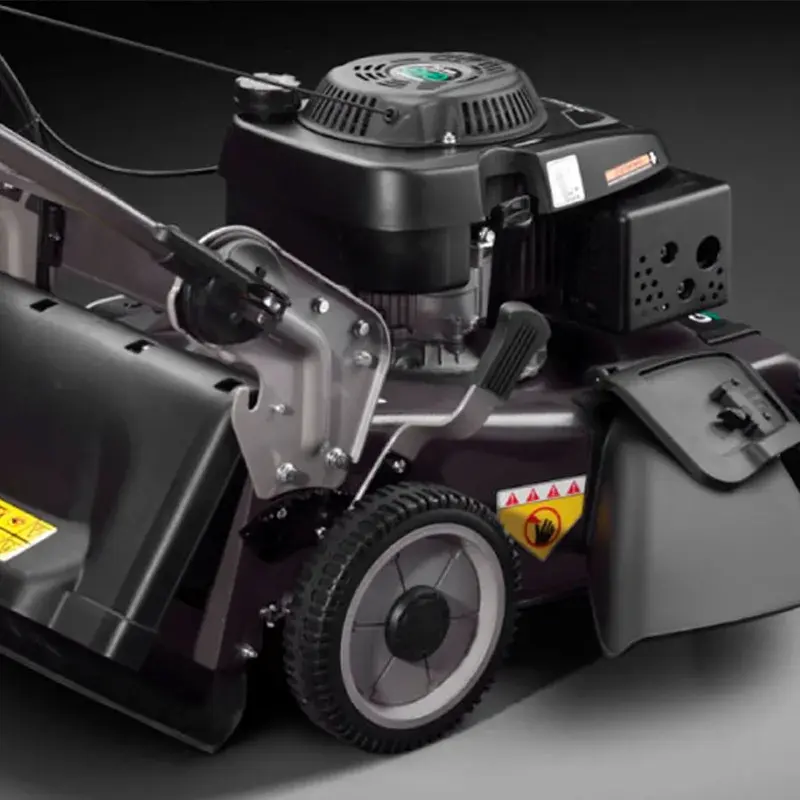 Бензогазонокосилка оснащена специальной системой стрижки травы 3 в 1, которая позволяет выбрать способ распределения травы: сбор в 60-литровый контейнер для дальнейшей утилизации, мульчирование или боковой выброс. Режущая дека представляет собой стальной S-образный нож из цельного металлического листа с профилем прочности. Его форма создает поток воздуха, «утягивающий» траву ближе к режущей поверхности, что гарантирует отличный результат покоса.