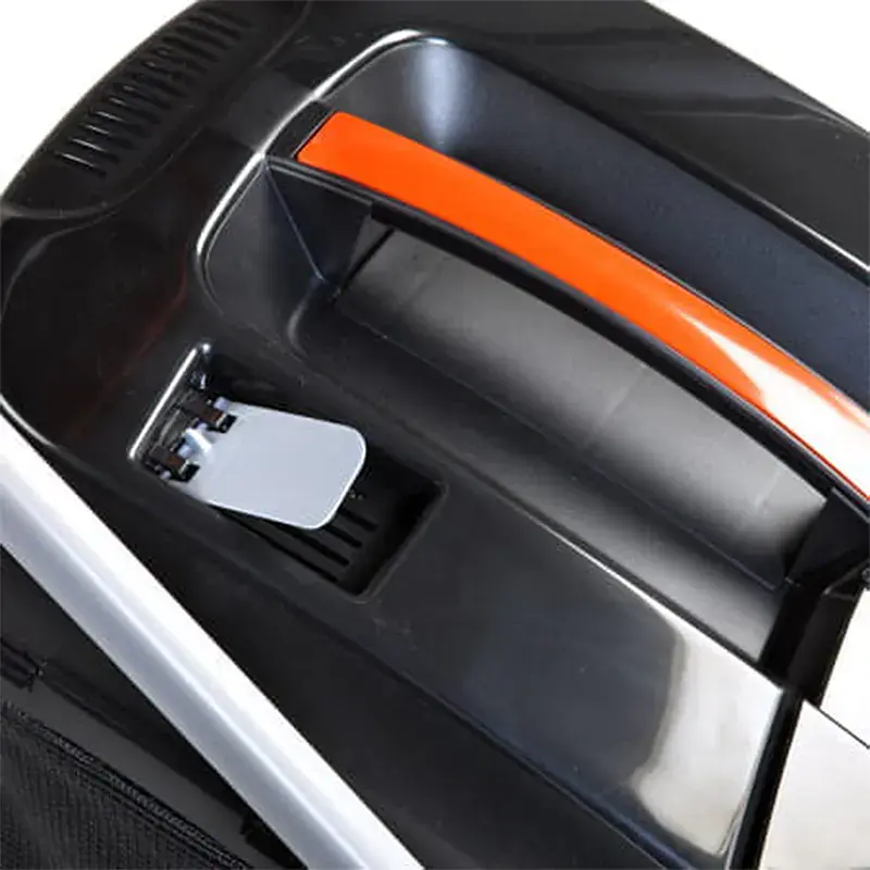 - Центральная регулировка высоты стрижки от 28 до 75 мм. Эргономичный рычаг обеспечивает легкую регулировку сразу по всем колесам, устанавливая высоту стрижки в одно из 5 положений.