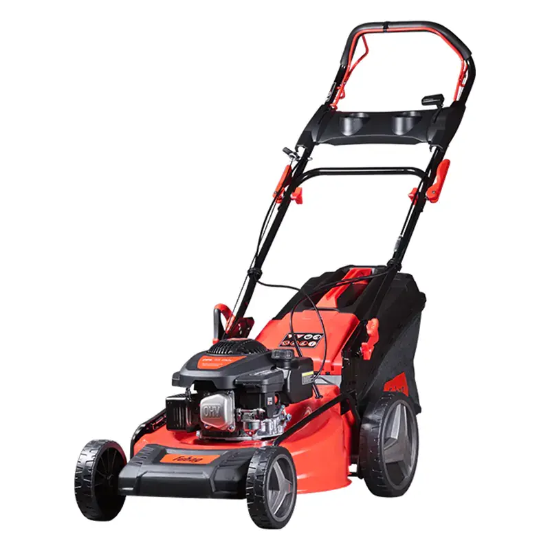 Благодаря электростартеру бензиновая газонокосилка легко заводится одним нажатием кнопки. Данная модель оснащена трехступенчатым переключателем скорости движения. Частота вращения ножа сохраняется независимо от выбранного скоростного режима. Срезанную траву можно либо собирать в подсоединенный травосборник, либо оставлять на газоне. Мульчирующая заглушка позволяет измельчать скошенную растительность и возвращать обратно для удобрения почвы через боковой разгрузочный лоток или задний выброс. При помощи рычага переключения высоты кошения можно выбрать любой из 8 уровней среза травы, который наиболее подходит для ухода за газоном.