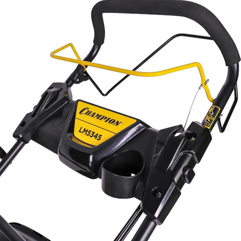 Бензиновая газонокосилка Champion LM5345 предназначена для скашивания небольшой растительности на участках площадью до 15 соток. Модель оснащена 4-тактным двигателем, который обеспечивает мощность 6 л.с. Машина способна работать в 3 режимах: сбор травы в контейнер, задний и боковой выброс.