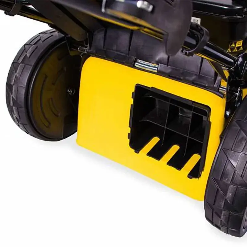 В газонокосилке Champion LM5347BS предусмотрено сразу несколько вариантов утилизации скошенных растений. Вы можете убирать их назад или вправо с помощью специальных направляющих желобов заднего или бокового выброса соответственно.