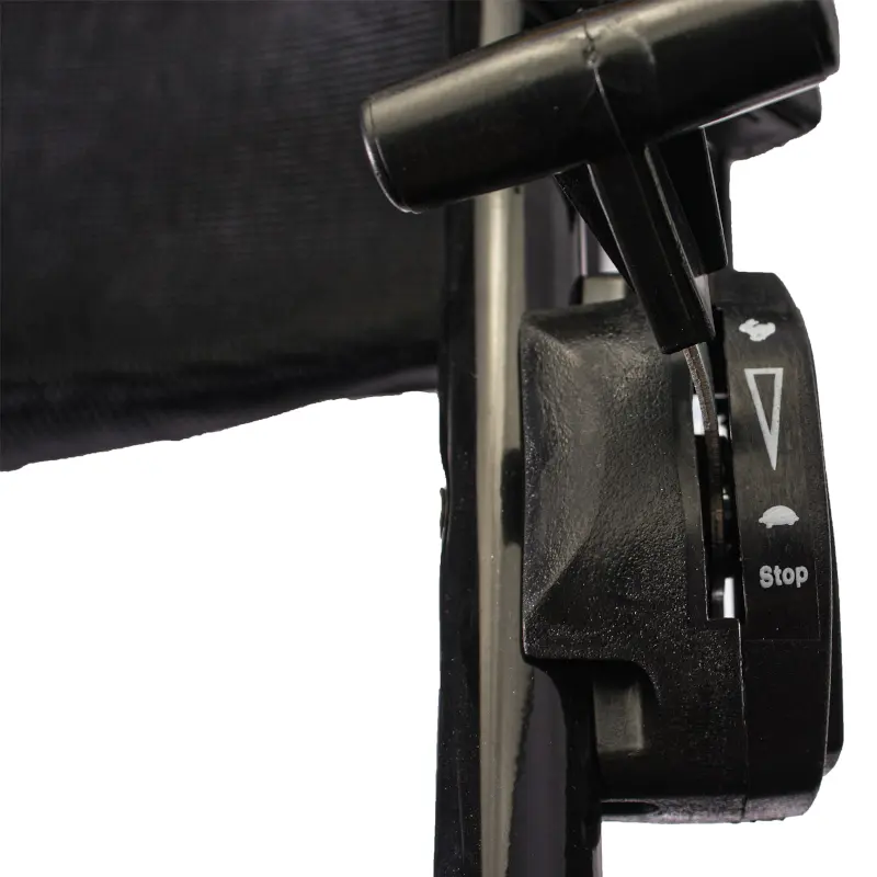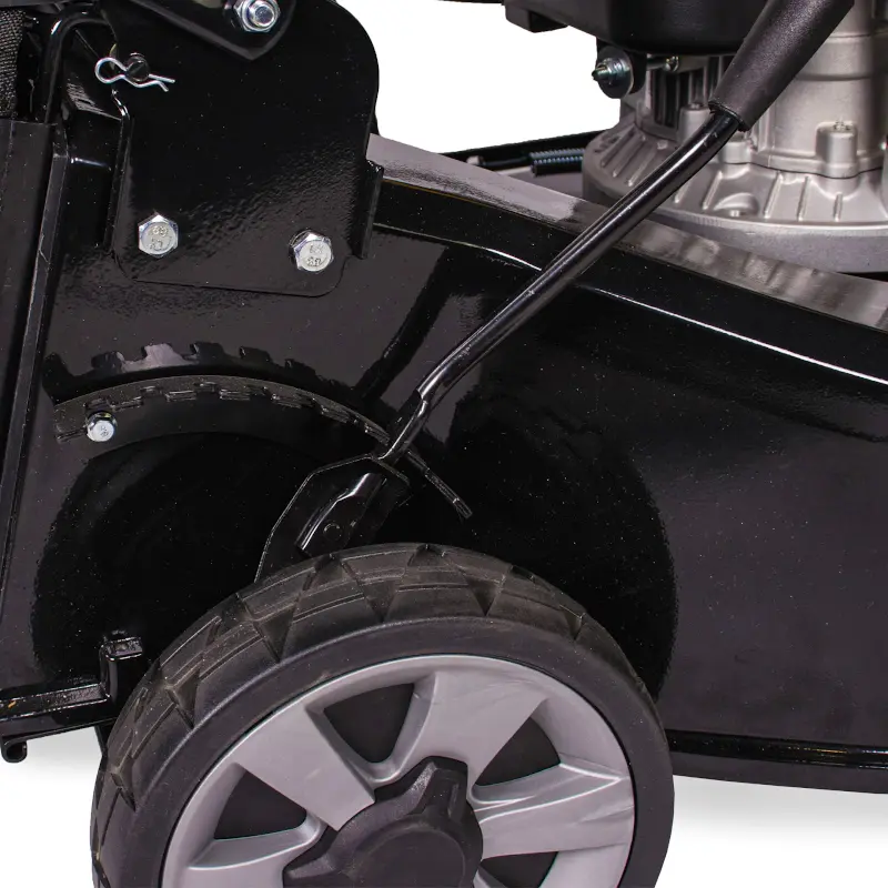 Инструмент оснащен центральным рычагом для регулировки высоты скашивания. 8 различных позиций настраивают данный параметр в диапазоне от 25 до 80 мм. Это позволяет скашивать траву различной длины.