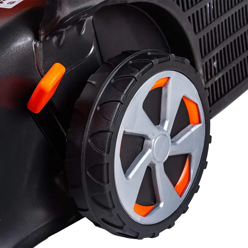 - Независимая регулировка высоты стрижки от 28 до 75 мм. Установка высоты среза производится на каждом колесе, при помощи удобных рычагов, переводимых в одно из 4 положений.