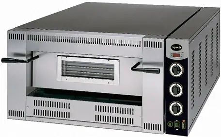 Наличие смотрового окна и встроенной подсветки позволяет следить за процессом приготовления без необходимости открывания дверцы. Оснащена механической панелью управления и термостатом для независимого регулирования нагрева верхних и нижних ТЭНов. Под выполнен из огнеупорной шамотной глины толщиной 25 мм.