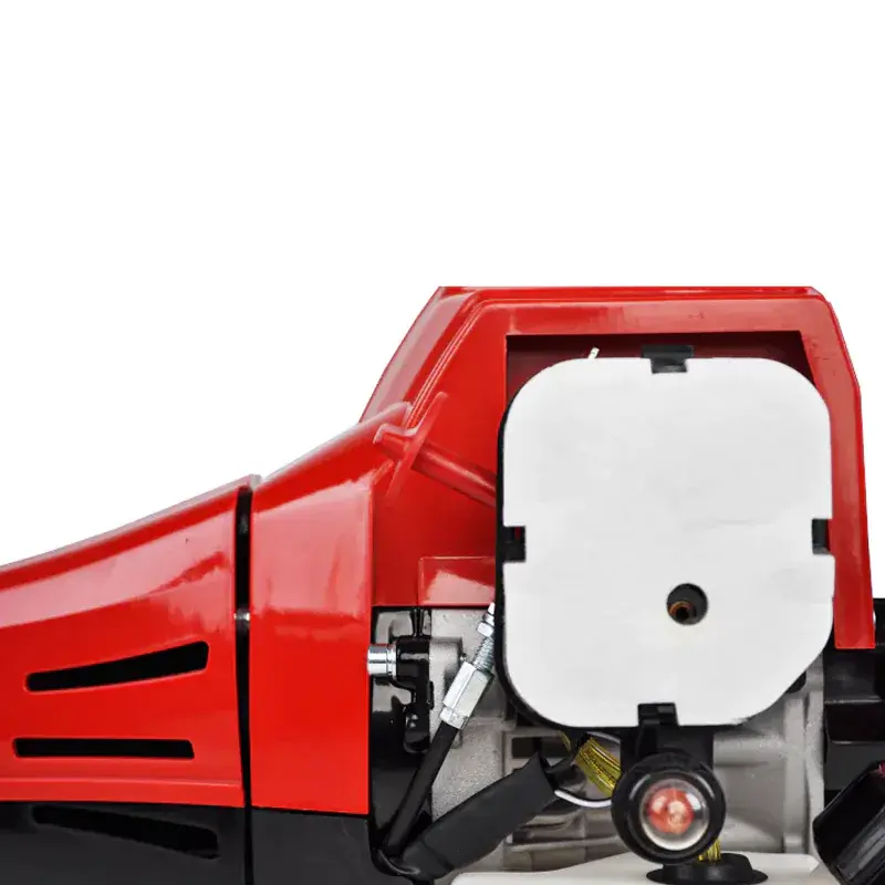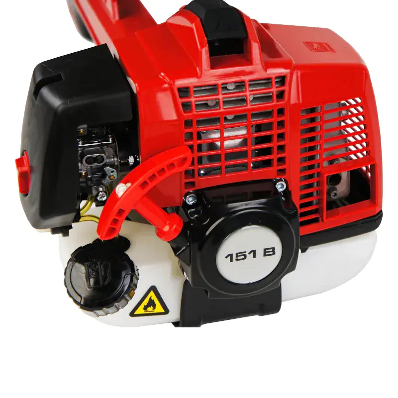 Бензиновый триммер оснащен велосипедной рукояткой с элементами управления, удобно расположенными под рукой. Кнопка включения/выключения служит для мгновенной остановки двигателя в экстренном случае. Длину лески можно увеличить прямо во время работы — для этого достаточно слегка ударить триммерной головкой по земле. Катушка имеет конструкцию «Fast & Easy», позволяющую легко и быстро заправить режущий шнур. Система облегченного запуска позволяет оператору прилагать меньше усилий для вытягивания шнура стартера двигателя. Ранцевый ремень с двумя широкими мягкими лямками эффективно снижает нагрузку на плечи и руки.
