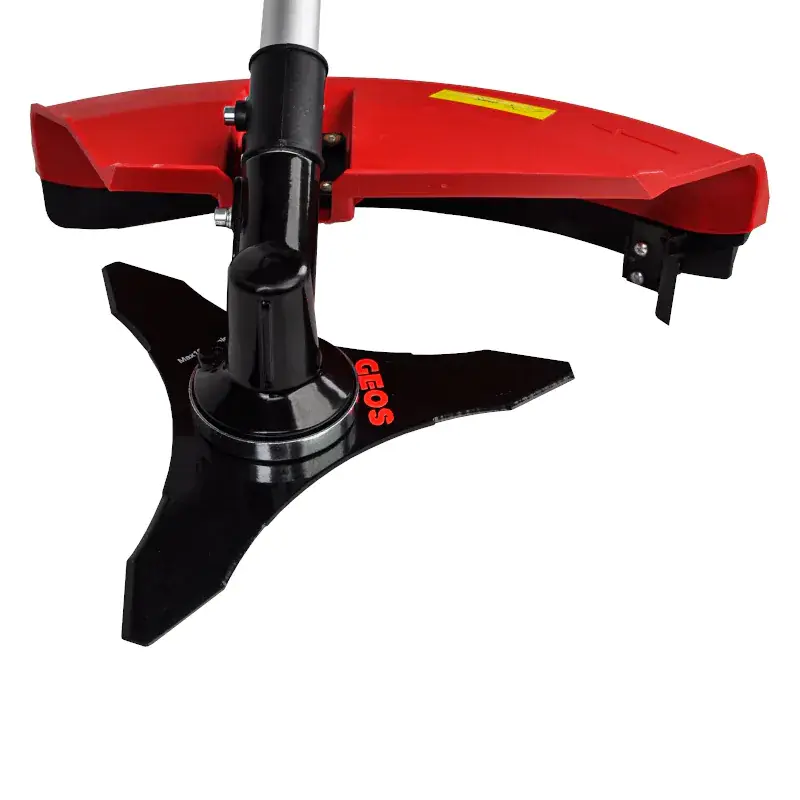 Бензиновая мотокоса Geos Max Premium 151 B справится с кошением травы на неровных поверхностях и в труднодоступных местах, где неудобно использовать газонокосилку на колесах. Благодаря двум оснасткам — полуавтоматической триммерной катушке и металлическому ножу — можно быстро очистить участок от густых зарослей сорняков любой высоты и даже мелкого кустарника. Ширина скашивания леской составляет 415 мм, ножом — 255 мм.