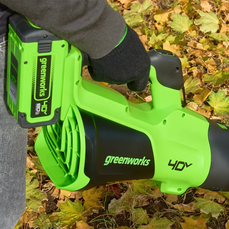 Легкое (2,6 кг без батарей), и в то же время мощное устройство для уборки придомовой территории и в саду. По скорости и объему воздушного потока соответствует бензиновым устройствам с двигателем 30 см3. Аккумуляторная воздуходувка Greenworks предназначена для сдувания листьев, травы, мусора. Скорость воздушного потока плавно регулируется, круиз контроль фиксирует выбранную скорость. Турбо режим позволяет убирать сильно загрязненную территорию. Высокая производительность обеспечивается бесщеточным двигателем DigiPro™, который не требует обслуживания и работает существенно тише бензинового. Оптимальная развесовка и удобная ручка с нескользящим покрытием делают работу с инструментом просто приятной. Воздуходувку рекомендуется использовать с аккумуляторной батарей емкостью не менее 4Ач.