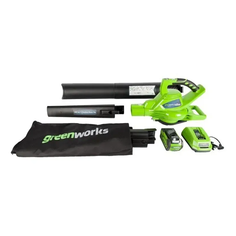 Воздуходувка пылесос садовый аккумуляторный Greenworks линейки 40 вольт (модель GD40BVK3)- предназначен для уборки территорий от пыли и мусора, а также от опавших листьев.