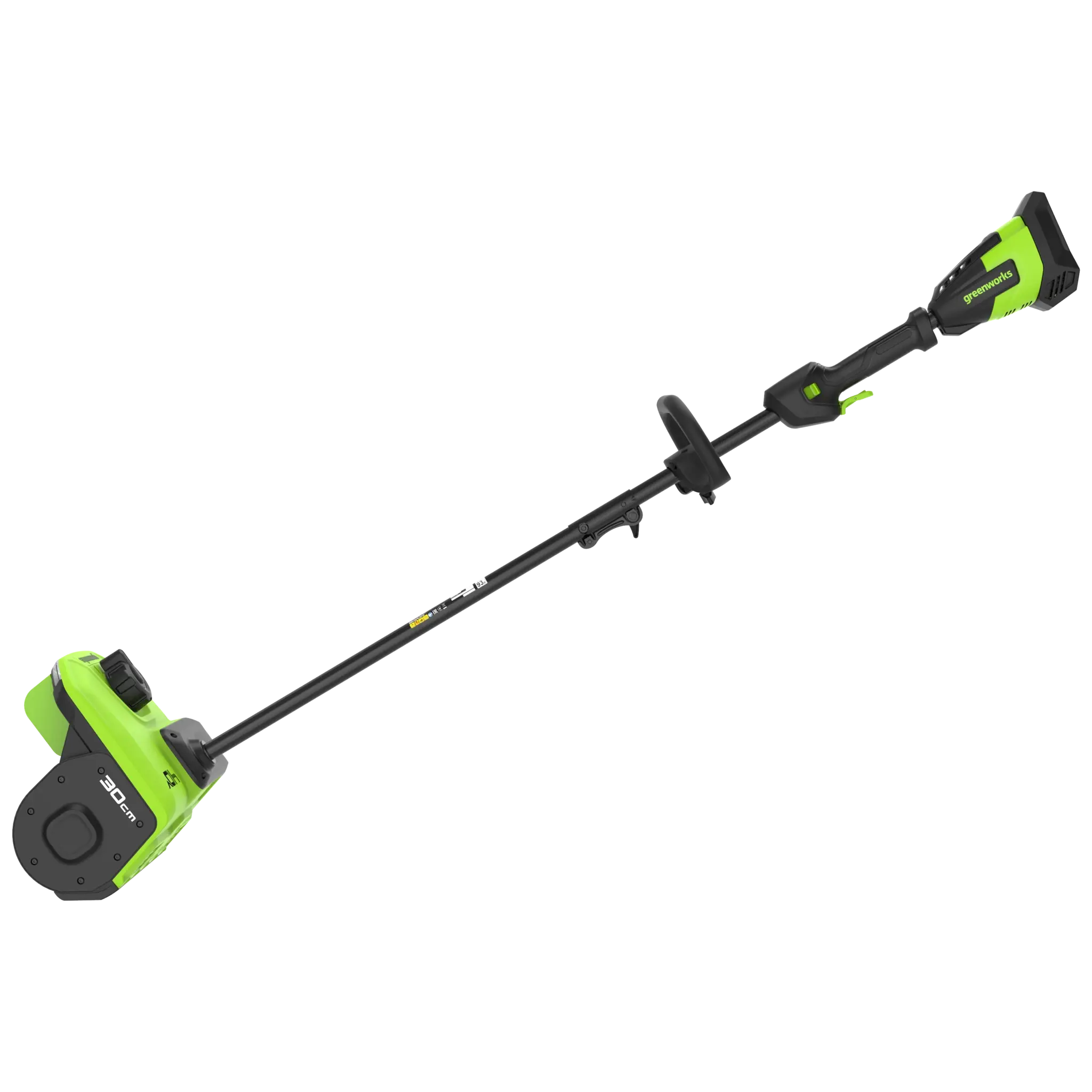 Снегоуборочная лопата Greenworks GD40SS2 позволяет сэкономить время и силы на расчистку снега перед домом или гаражом. Удлиненный прямой черенок избавляет от необходимости наклоняться и напрягать спину. Зарядное устройство и 40-вольтовый аккумулятор емкостью 4 Ач входят в комплект поставки. Снегоуборщик с шириной обработки 30 см оснащен блокировкой выключателя, яркими светодиодными фарами, регуляторами скорости и направления выброса снега.