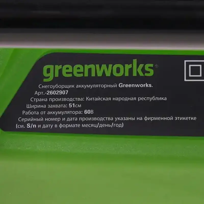 В верхней части ковша расположено 2 светодиодных фонаря. Они освещают пространство для комфортной работы в темное время суток. При включении бесщеточной снегоуборочной машины Greenworks GD60PST 60V подсветка активируется автоматически.