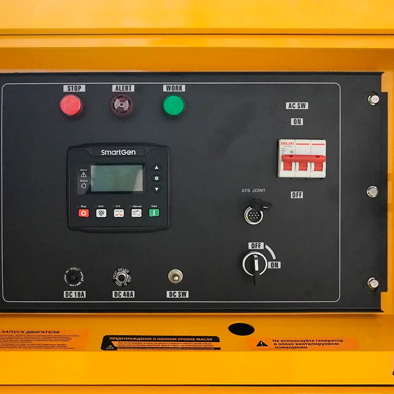 Генератор оснащен медной обмоткой альтернатора и системой контроля напряжения AVR, что обеспечивает стабильное напряжение и защиту подключенных устройств. Дисплей, индикатор уровня топлива, счетчик моточасов и датчик масла позволяют легко контролировать работу генератора. Стационарная конструкция и вес 520 кг делают его идеальным для использования на постоянных объектах, где требуется надежное и мощное энергоснабжение.