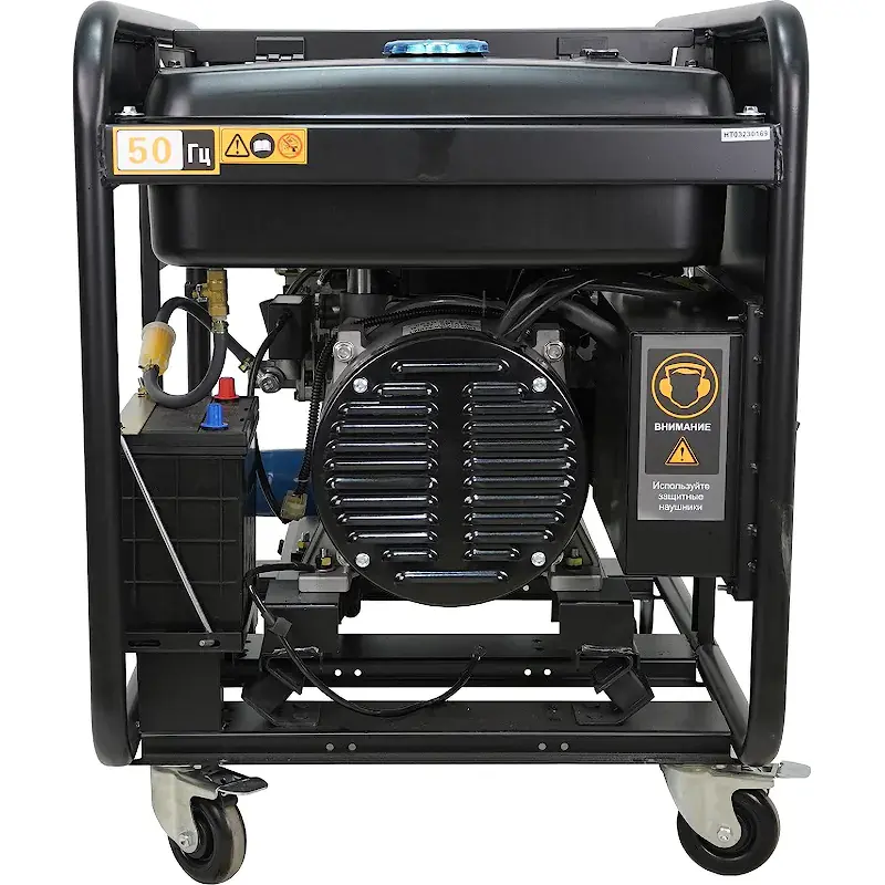 Благодаря наличию колес мини-электростанцию при необходимости можно легко переместить. Класс герметичности IP23 обеспечивает надежную защиту от проникновения пыли и влаги, что позволяет использовать дизель-генератор на улице. Розетки закрыты крышками, предохраняющими от попадания грязи.