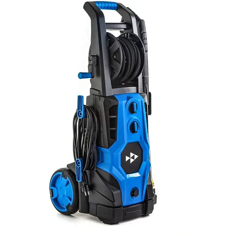 Электрическая мойка высокого давления подходит для использования в быту и на автомойках. Устройство генерирует мощную струю с давлением до 230 бар, которая удаляет даже стойкие загрязнения. В зависимости от типа очищаемой поверхности напор можно регулировать, во избежание повреждения покрытия. Встроенный пеногенератор ускоряет процесс и улучшает результат уборки.
