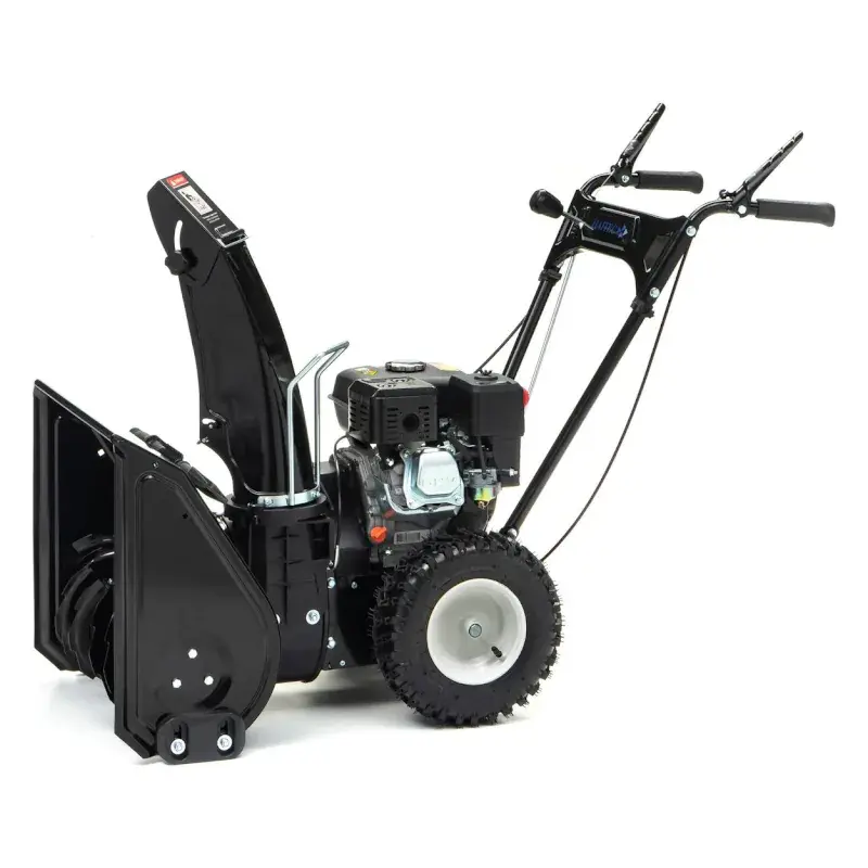 Модель оснащена прочным металлическим шнеком, который позволяет быстро справляться даже с затвердевшими комками снега. Мощный мотор обеспечивает отбрасывание снега на большое расстояние. При этом направление и дальность выброса настраиваются вручную.