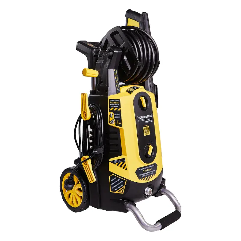 Мойка высокого давления Hanskonner HPW9230I с максимальным давлением 195 бар и производительностью 450 л/ч предназначена для очистки транспортных средств, лодок, фасадов зданий, ограждений и садового инвентаря с помощью чистой воды или моющего средства.