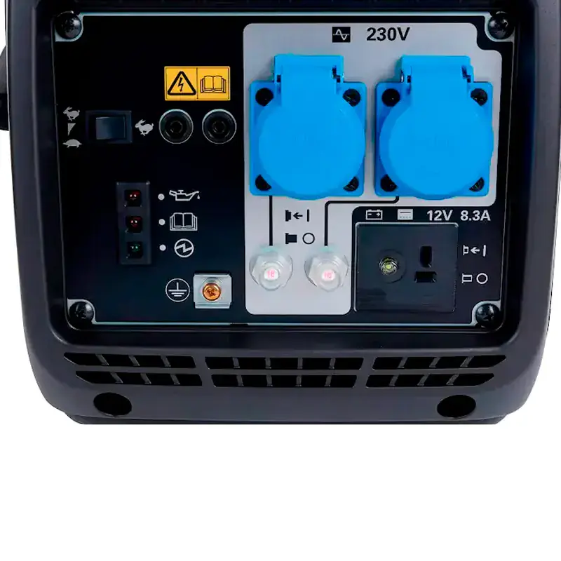Система легкого старта упрощает запуск двигателя. Электроприборы можно подключать к двум розеткам на 220 В переменного тока. Для подзарядки 12-вольтовых аккумуляторных батарей предусмотрен выход постоянного тока. Мигающие сигнализаторы сообщают о перегрузке, низком давлении масла, перегрузке и выработке переменного тока.