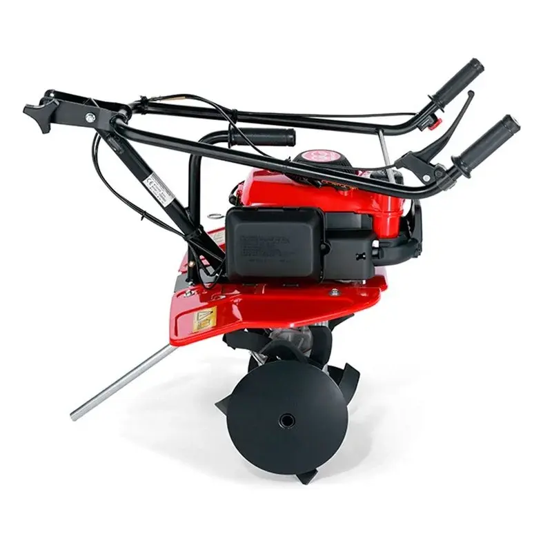 Специальные защитные диски по краям фрез обеспечивают точность вспахивания без повреждений соседних посадок. С помощью поворотной рукояти прибор удобен в управлении.