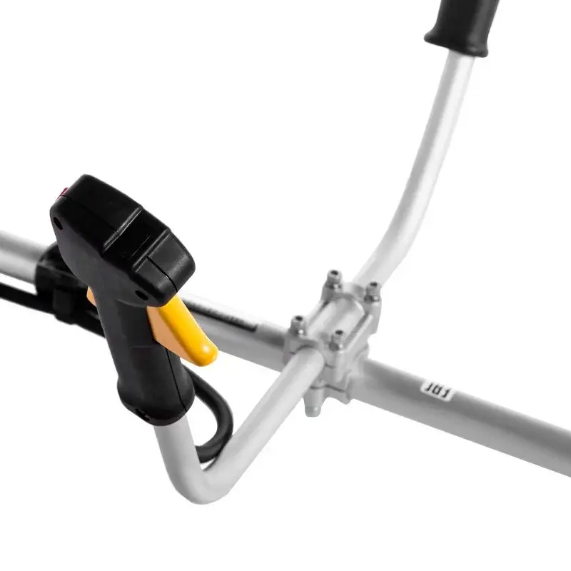 - Эргономичные рукоятки. Имеет эргономичную U-образную рукоятку и из особо прочного пластика с резиновым покрытием, обеспечивающим надежный хват и поглощающим вибрацию.