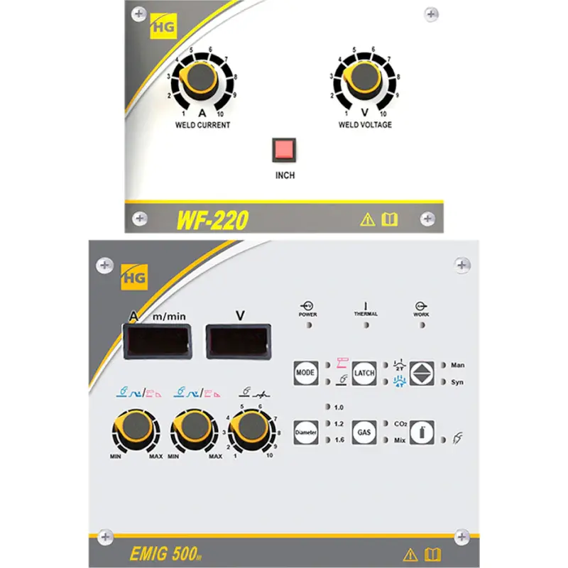 Сварочный аппарат поддерживает синергетическое управление при работе проволокой. Достаточно задать только желаемую скорость подачи проволоки, а напряжение будет подобрано автоматически.