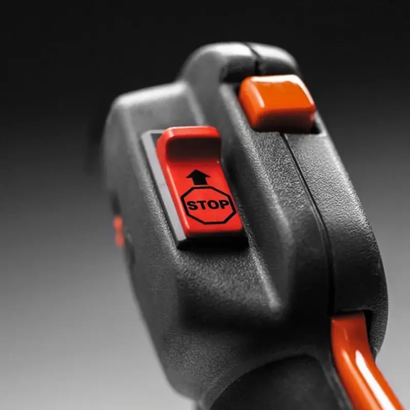 Бензиновый триммер имеет прямую штангу для увеличения охвата и редуктор, обеспечивающий повышенный крутящий момент. Регулировка длины лески происходит в полуавтоматическом режиме. Во время работы достаточно слегка ударить триммерной головкой по земле, чтобы режущая струна выдвинулась из катушки. В комплект поставки входит четырехлопастной нож запатентованной формы для кошения жесткой и высокой травы. Выключатель зажигания на рукоятке управления автоматически возвращается в начальное положение, упрощая повторный запуск.