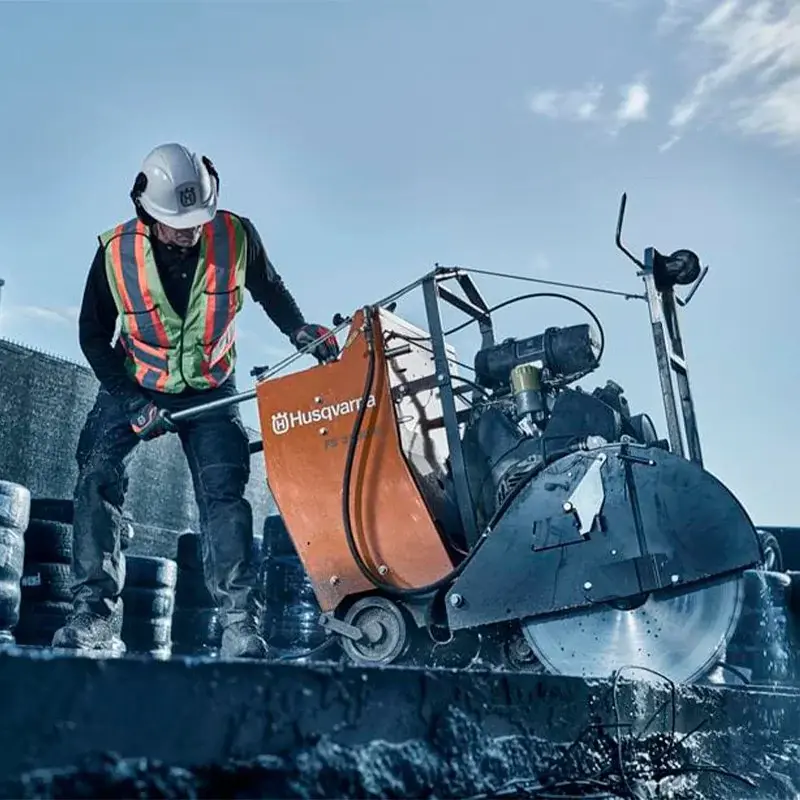 Глубина пропила до 311 мм с алмазным диском 750 мм. В стандартную комплектацию входят регулируемые рукоятки, тахометр двигателя и счетчик моточасов. В качестве опции доступны комплект водяного насоса и комплект освещения.