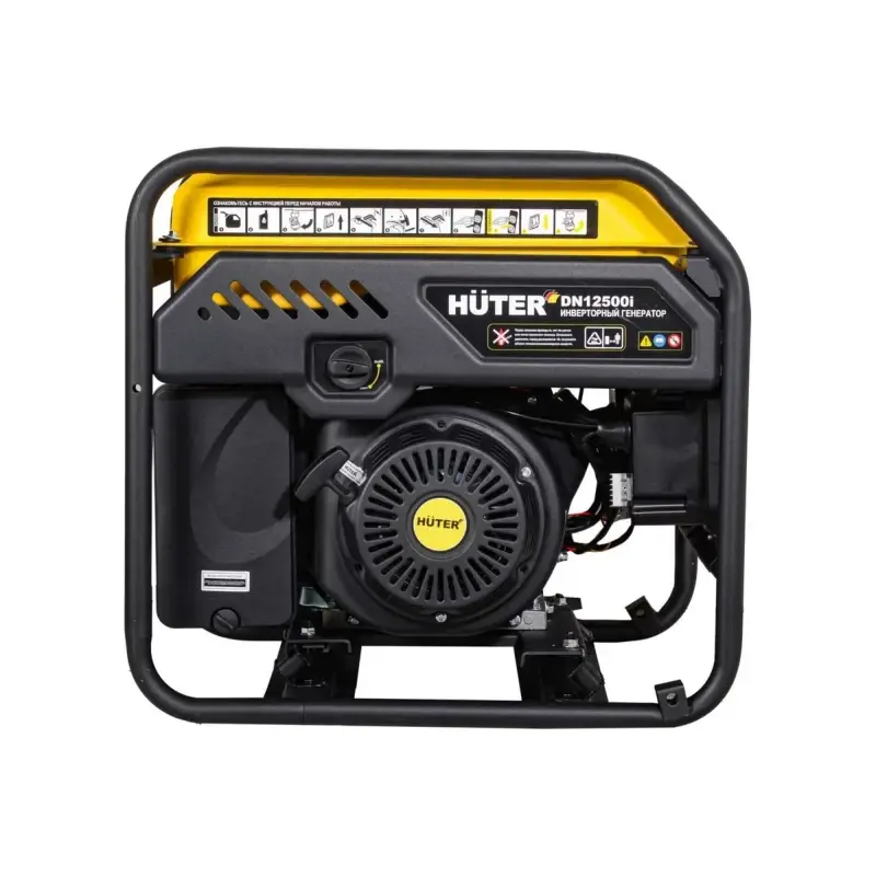 В местах, где нет центрального электроснабжения или имеют место частые его перебои, на помощь придёт электрогенератор Huter DN12500i. Это компактный агрегат, в котором источником энергии используется 4-тактный карбюраторный двигатель, работающий на неэтилированном бензине АИ-92. Ёмкость топливного бака составляет 25 л. Тип генератора - инверторный, а это значит, что он выдаёт ток с крайне малой погрешностью, который специалисты называют «чистым синусом» и используют для питания чувствительного электронного оборудования, такого как, например, ноутбуки, смартфоны, различная оргтехника.