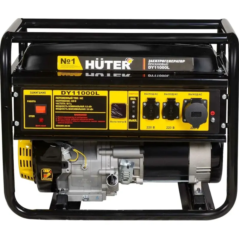 Электрогенератор Huter DY6500LX выполняет роль резервного источника питания для строительного или бытового технического оборудования. Номинальная и максимальная мощность 4-тактного однофазного двигателя составляют 5 и 5,5 кВт соответственно.